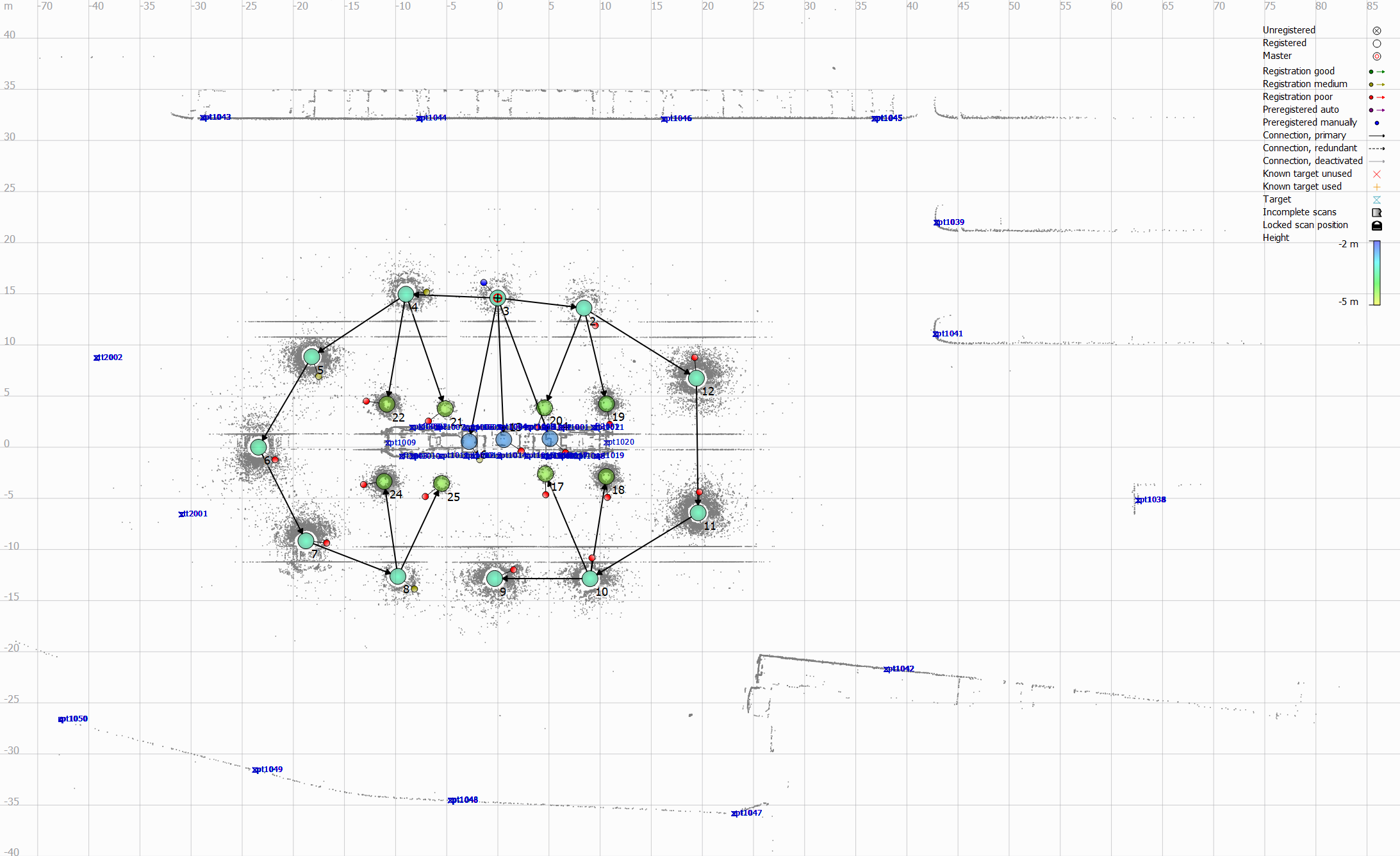 The resolution setting “Super High” was chosen for the outer rings of the scan pattern to reduce the distance between 3D points around targets (which were often angled), and who needed to be usable until at least 40 meters from the scanner location.